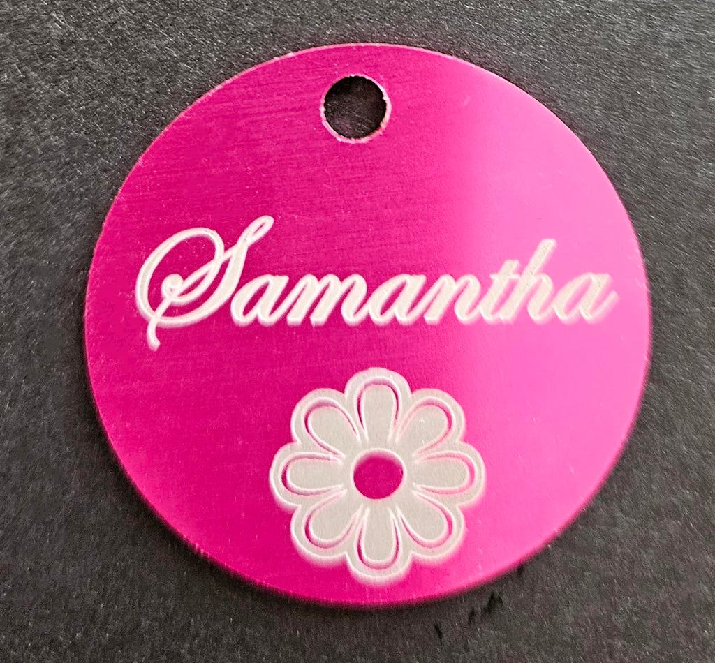 Discs are manufactured from 1mm Pink Dye Anodised Aluminium with a 3mm hole to top.